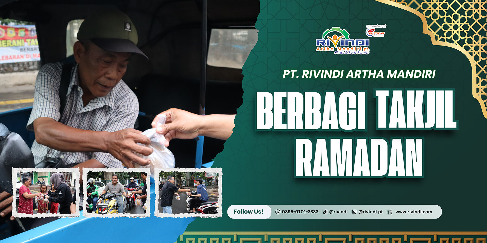 Pada kegiatan ini, PT Rivindi Artha Mandiri membagikan 700 paket takjil yang disebar secara merata di seluruh cabang perusahaan, yaitu: