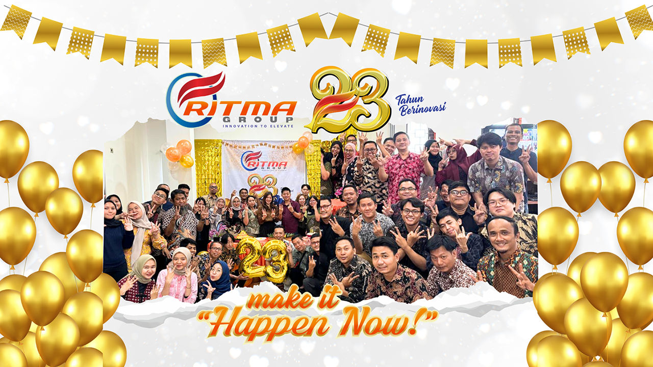 Tepat pada 2 Mei 2025, seluruh jajaran manajemen dan karyawan RITMA merayakan HUT ke-23 dengan penuh rasa syukur dan harapan besar untuk masa depan. Dengan mengangkat tema “Make It Happen Now”, RITMA ingin mengajak seluruh elemen perusahaan untuk tidak hanya bermimpi — tetapi mulai mewujudkan perubahan nyata, hari ini juga. Sebagai mana yang ada pada lambang angka 23 dengan elemen sayap berwana Merah yang memiliki arti di hari jadi ke 23 tahun ini RITMA dapat Terbang semakin Tinggi dengan Semangat yang Membara.