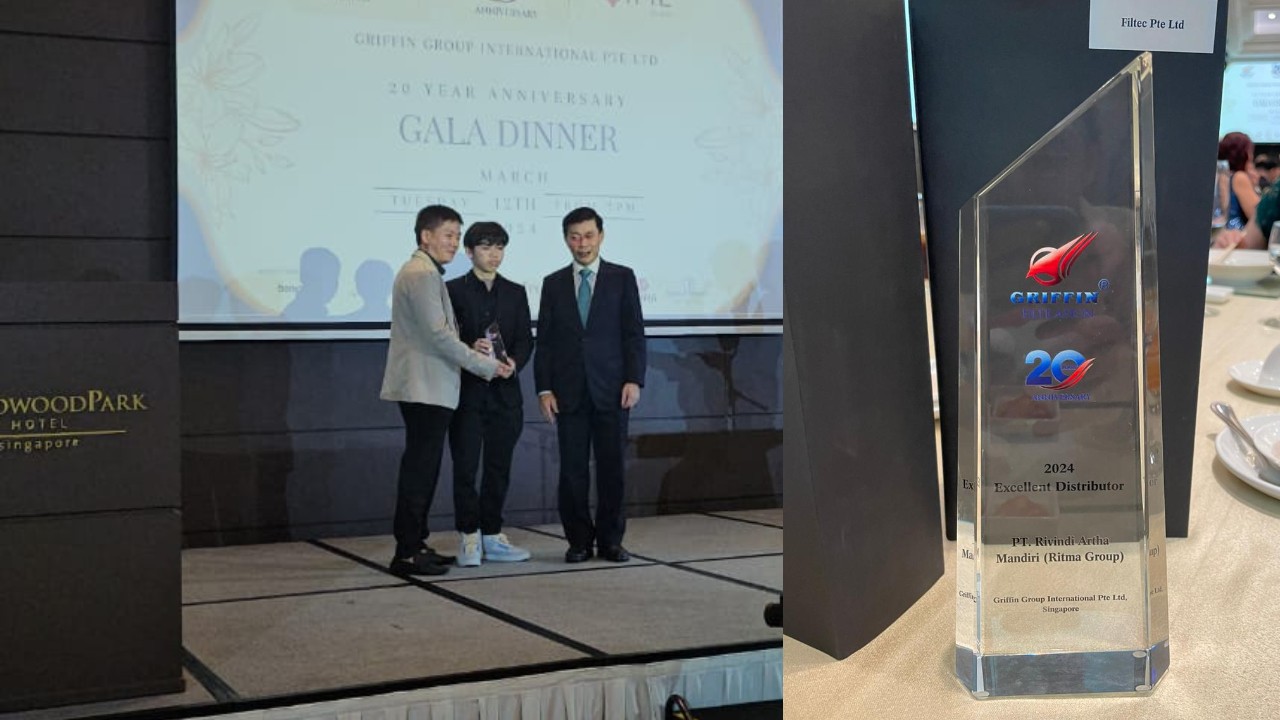 March 12, 2024. It is with great pleasure that we announce the prestigious moment where Mr. Lee Yi Shyan, in recognition of outstanding dedication and remarkable achievements, presented the Griffin’s Excellent Distributor award on stage to none other than Mr. Eddie, President Director of PT. Rivindi Artha Mandiri (Ritma Group).