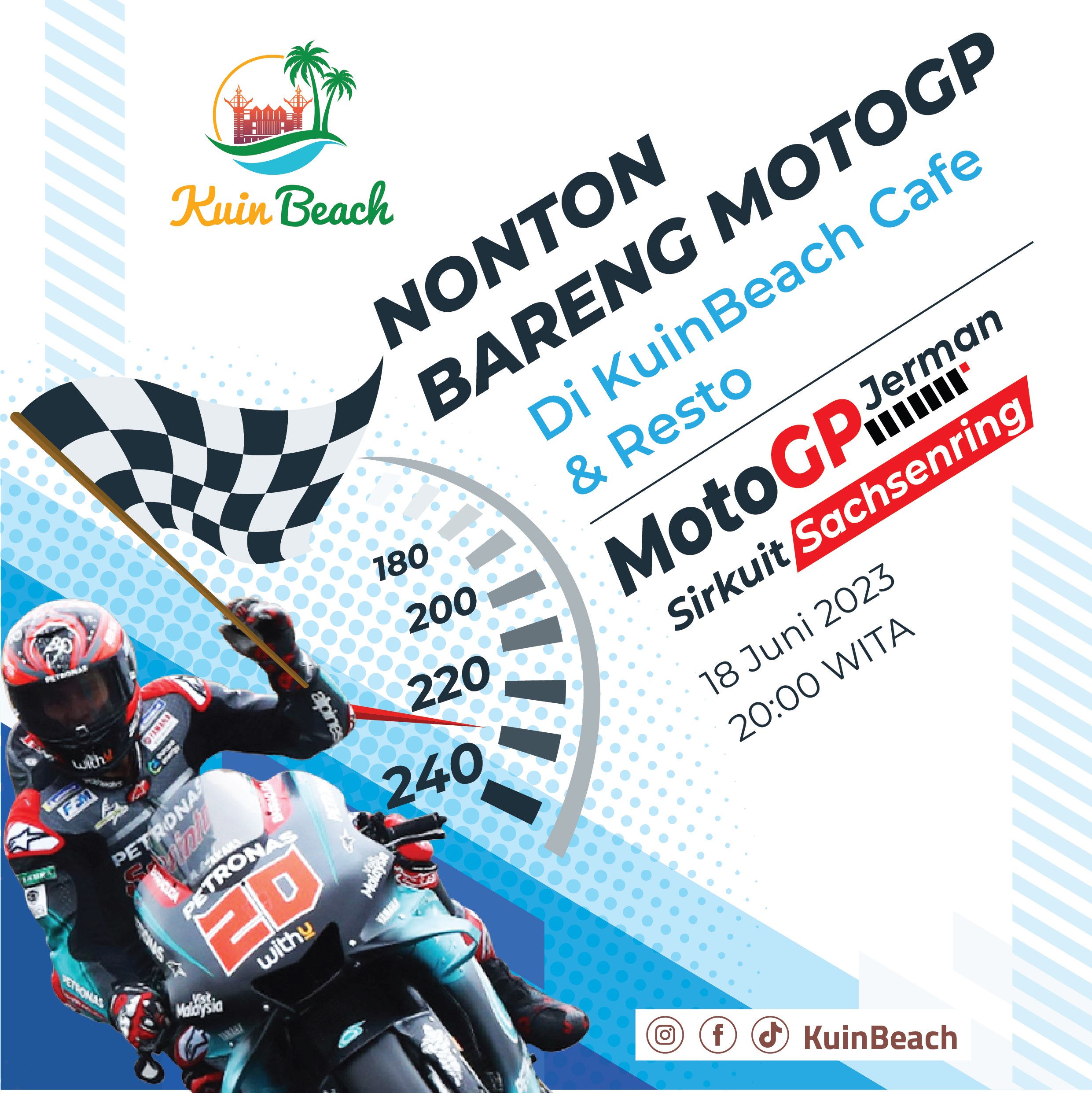 18 Juni 2023, Café Kuin Beach mengadakan NoBar (Nonton Bareng) pertandingan MotoGP race, bagi kalian yang tinggal di Banjarmasin – Kalimantan Selatan, ingin NoBar Bersama teman, sahabat, keluarga, atau pun komunitas bisa nih datang aja ke cafe Kuin Beach saat ada event pertandingan olah raga international.